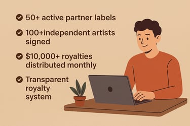 Every month, we distribute royalties of over $10,000 USD to our artists and partner labels. Our 100% transparent reporting system ensures that every stream and every royalty is accounted for, building long-term trust and loyalty.